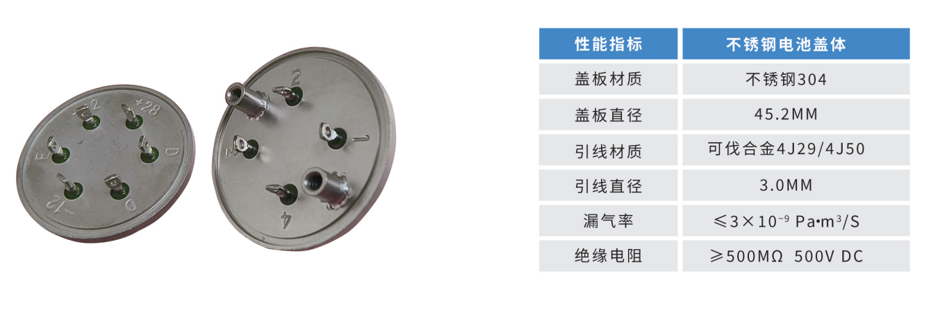 可伐合金导流柱与不锈钢盖板之间采用单孔玻璃烧结工艺,在保证绝缘性和气密性的同时,提供了耐高温、耐高压和抗过载性能。